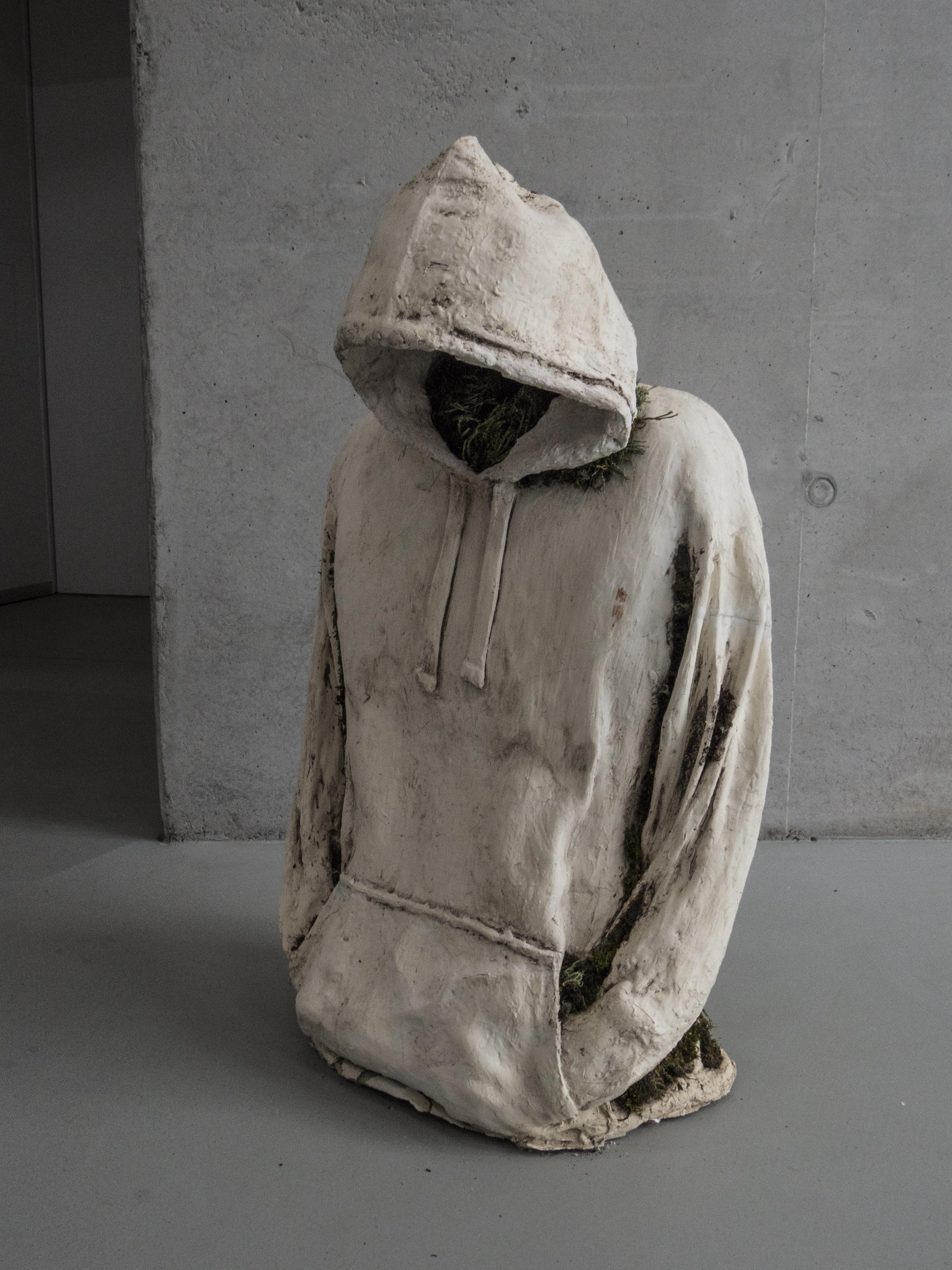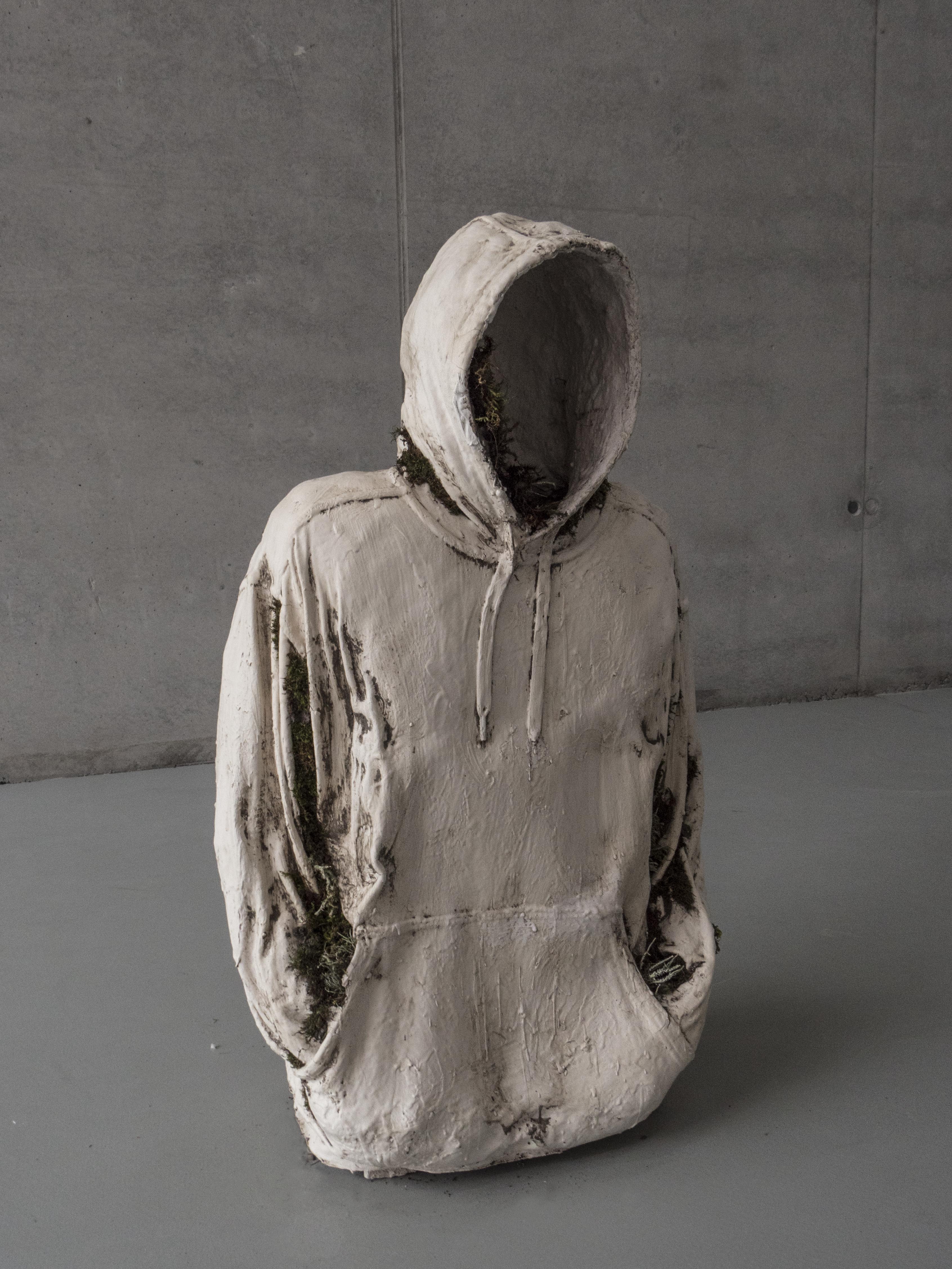 Biscuit de faïence sur textile trempé, terre, mousse végétale